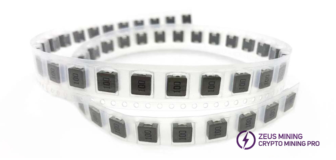 Common inductors on Antminer hash boards are coreless inductors and cored inductors. Core inductors are commonly found in Antminer S9, V9 and L3+, such as the HXX40A 1.5UH inductor. Coreless inductors are also called SMD inductors. Antminer 17 series, 19 series, and 21 series hash board's inductances have different values. For example, inductor 100, inductor 220, etc.