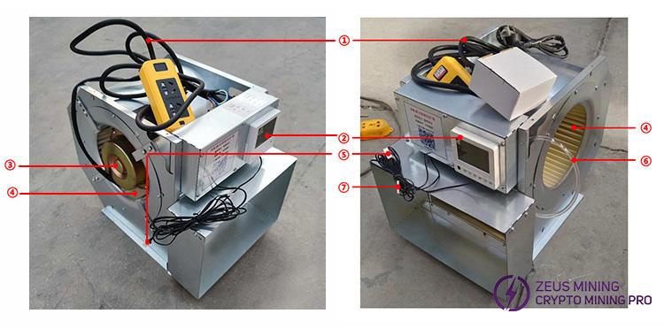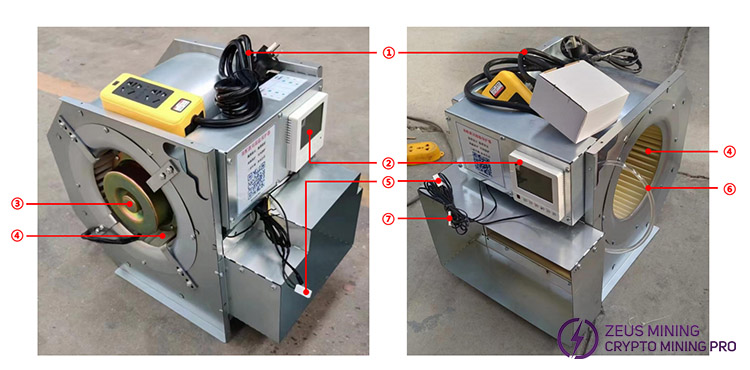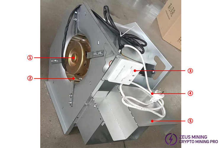 The shell of the standard version / temperature control version / wifi version silencer is made of aluminum, with a high-power brushless AC motor inside, and a 3 speed (standard version) or 4 speed (temperature control version / wifi version) adjustable speed controller to freely control the fan speed to meet the needs of different miners.