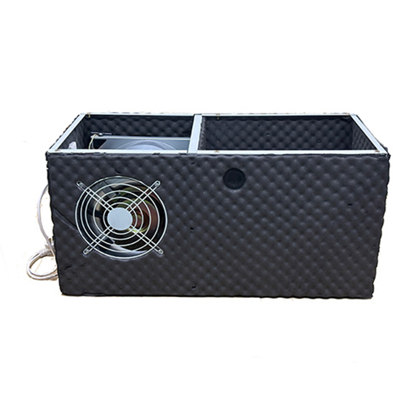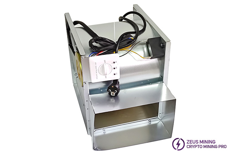 The shell of the blower version silencer is made of an engineering plastic shell, and a high-power brushless DC motor and turbo fan are used inside. It is equipped with a stepless speed regulation controller, allowing you to freely control the fan speed, which effectively reduces the noise of ASIC miners. For more details, please click Mini silencer blower for ASIC miner.
