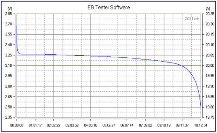 The discharge current is limited by the maximum power, less than 20A above 10V, and less than 10A above 20V.