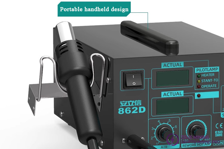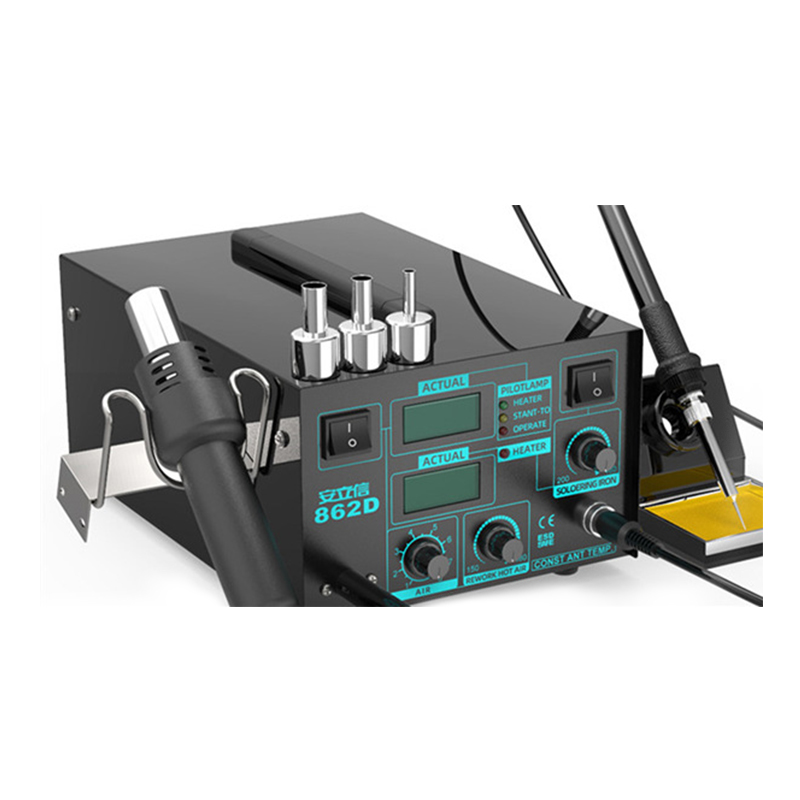 Welcome to choose our company's high-quality product, the 862D dual-digital anti-static hot air gun desoldering station. This product has 4 major advantages: two-in-one soldering iron air gun, temperature controllable, strong wind, and rapid heating.
