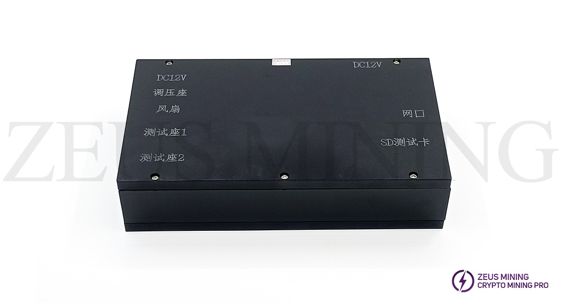 The new Antminer fixture has a 7-inch full-screen touch function. There are two test sockets on the left side of the fixture, a voltage regulator socket and a DC 12V power connection socket. Test all-in-one Antminer needs to be connected to a regulated cable, and only the miner's own power supply can be used.