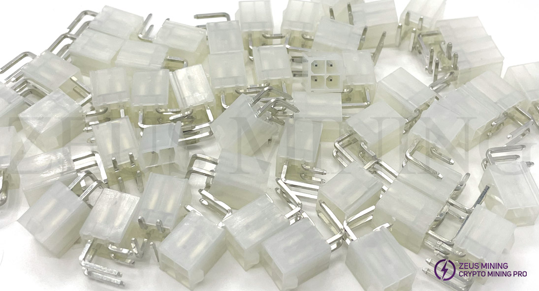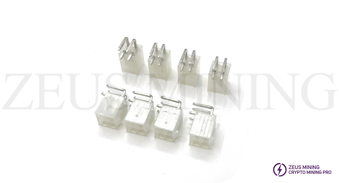Whatsminer control board 4.2MM curved pin connector The 4 pin connector is a 4.2mm pitch double-row wire-to-board soldering board header for connecting the Whatsminer control board and WhatsPower. It is made of copper and nylon, and the connection is firm and not easy to loosen.