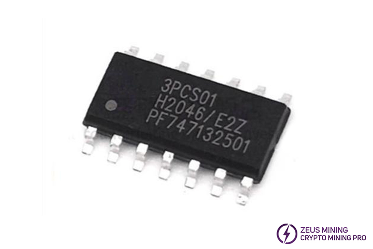 ICE3PCS01G PFC-CCM Controller IC The ICE3PCS01G is a 14-pin wide input range controller IC for active power factor correction converters. It is designed for converters in power boost topologies that require high efficiency and power factors, such as PCs, servers, LCD/PDP TVs and telecom. The gate switching frequency is adjustable from 21kHz to 100kHz and able to synchronize with external switching frequency from 50kHz to 100kHz. Voltage loop compensation is digitally integrated for better dynamic response and less design effort. It is a spare part of the controller IC for repairing the hash board.