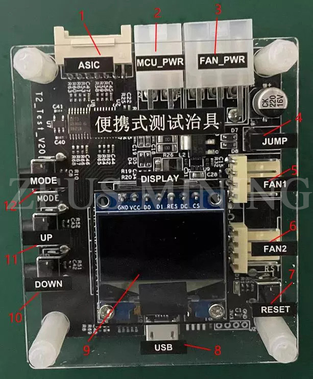 4. Mainboard spare power jumper (when testing T1/L1, the test fixture needs to supply power from the fan power supply interface first and then short the jumper; otherwise, it can be kept disconnected);