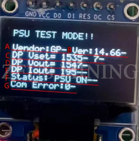 G: "Com Error: 0-" indicates the number of errors in power data communication. If it is not 0, there is a communication failure in the power supply, and the control board does not control the power supply.