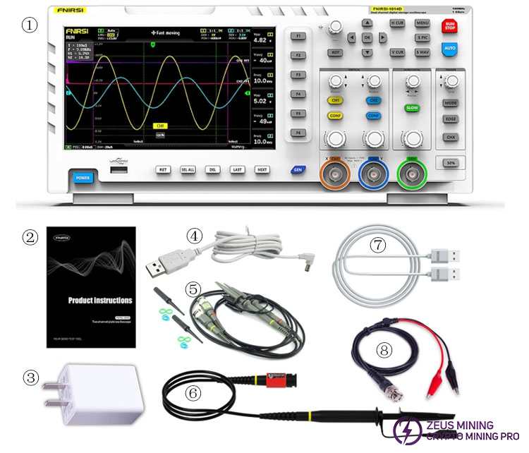 coupling | AC/DC | Accessories | 10X high voltage probe*2, 100M probe*1, USB cable, power cable, instruction manual |