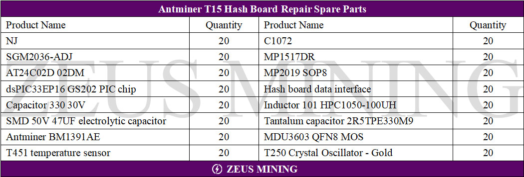 Bitmain Antminer T15 hash board spare parts list with ASIC chip: