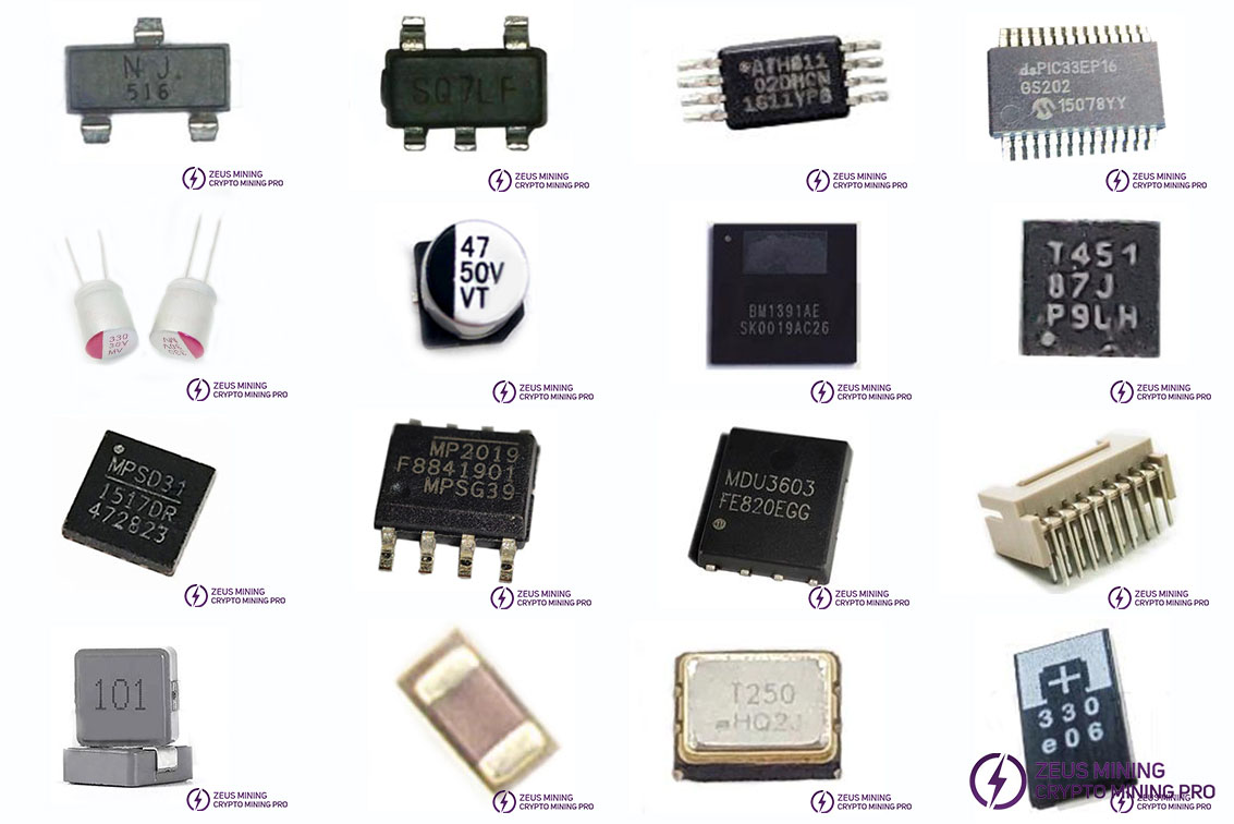 Bitmain antminer T15 hash board repair parts, antminer t15 hash board replacement parts repair kit. During the long-term continuous operation of the hash board, some components are prone to failure. For example, Bitmain Antminer BM1391AE, T451 temperature sensor, MP1517DR, AT24C02D 02DM, capacitor 330 30V, SMD 50V 47UF electrolytic capacitor, etc. They are some vulnerable electronic components on the T15 hash board, and a low hash rate on a single chip will also result in a low or no hash rate for the entire hash board. Therefore, after the summary of professional repair personnel, to achieve fast and accurate maintenance, professional t15 hash board maintenance kits can be used.