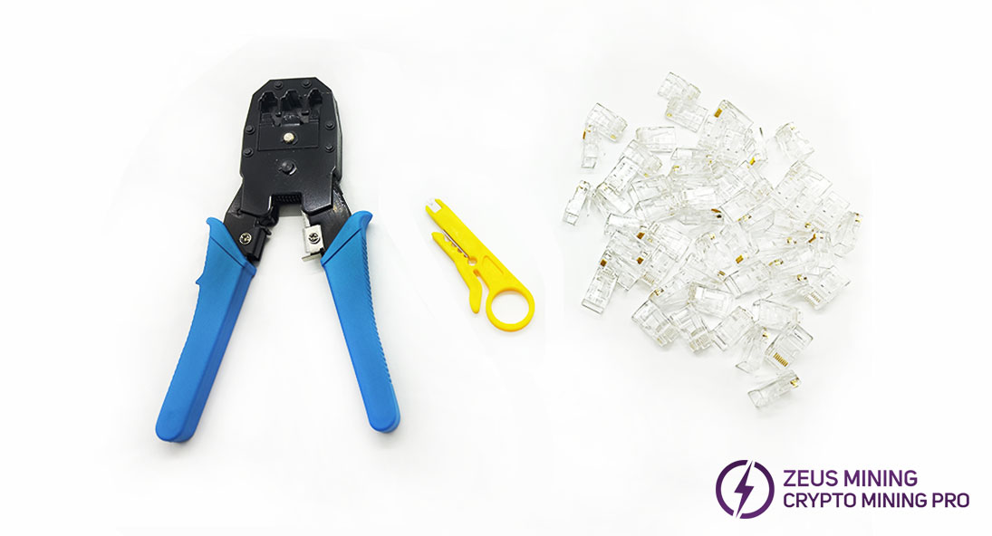 The network cable crimping tool set includes a three-purpose network cable pliers, a wire stripper, and 50 crystal plugs. The network cable pliers are simple and easy to use. If you encounter crimping problems, please contact our account manager, and we will professionally guide you on the correct crimping method.