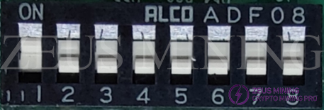 There is an 8 bit DIP switch on the overclocking board, as shown in the figure below, to configure overclocking options. When configuring the overclocking option, the Antminer must be powered off.