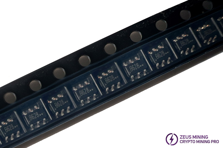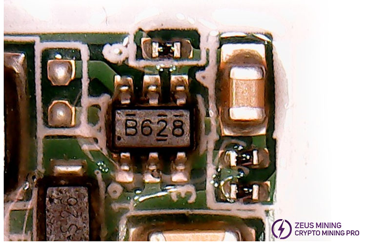 The B628 is a tiny, constant-frequency, high-efficiency step-up DC/DC regulator on the Whatsminer, Ebit, and Iceriver hash board. The circuit consists of a current mode PWM control loop, error amplifier, ramp compensation circuit, comparator, and power switch. The chip can work efficiently and stably in a wide load range, with a built-in 4A power switch and soft-start protection circuit. Up to 93% conversion efficiency can effectively extend battery life. The output voltage can be set by adjusting two external resistors. Includes undervoltage lockout, current limit, and thermal overload protection to prevent damage in the event of an output overload.