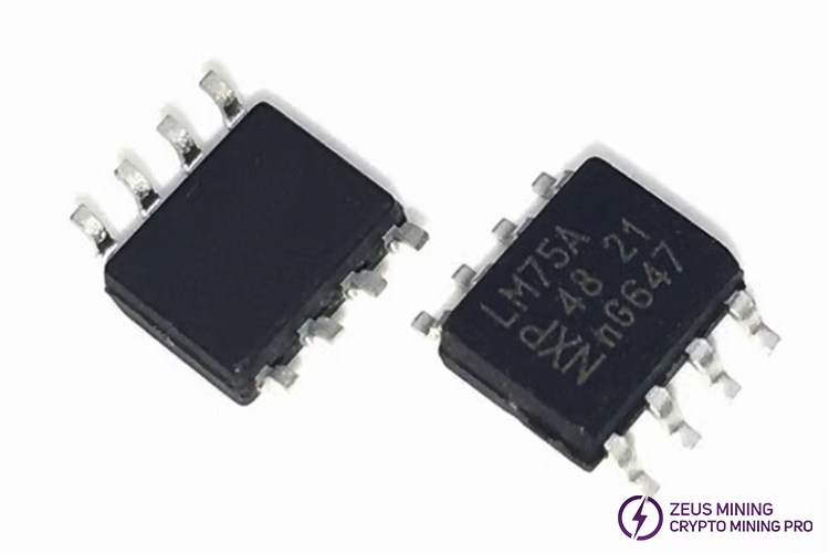 The LM75A temperature sensor chip is suitable for Antminer S19 series, S19 Pro+ Hydro, L9 and most Whatsminer hash boards.