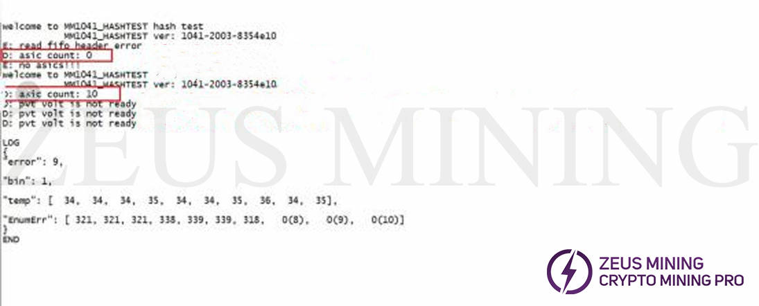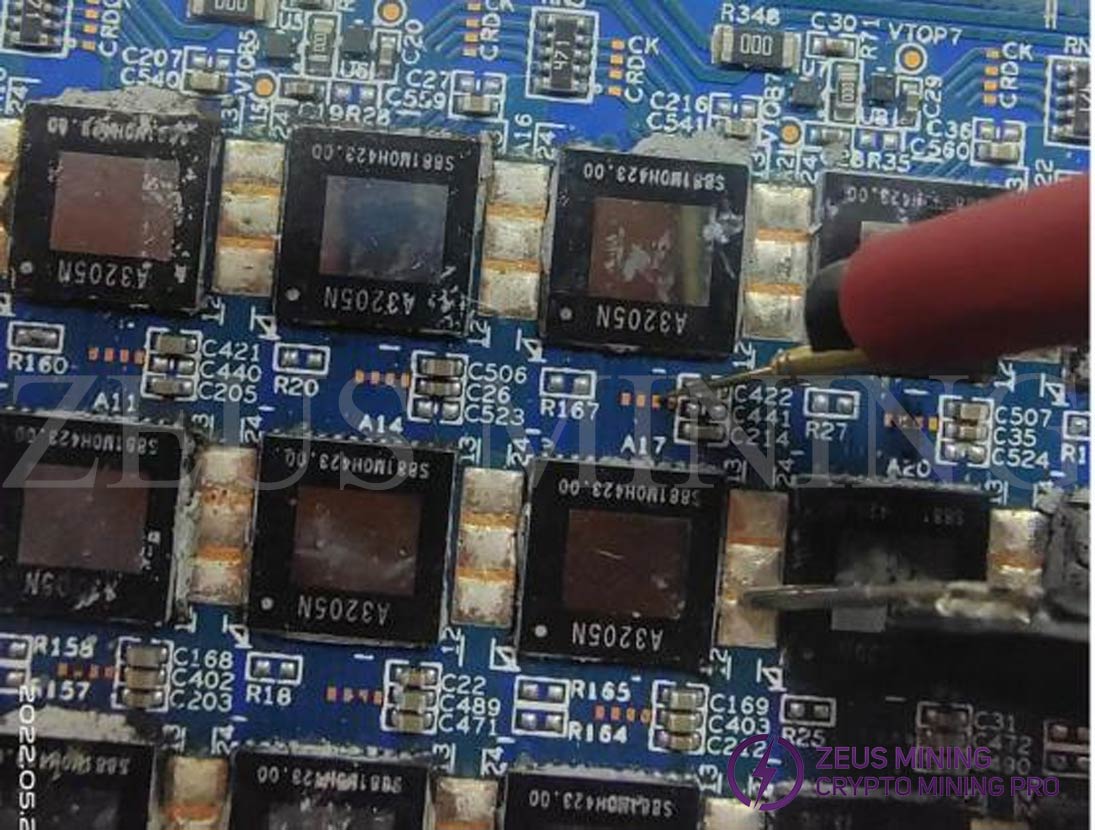 Short-circuit the D signal output by the A16 chip, and the test fixture displays asic count: 10. It should be noted that the correct number of chips is 16-6=10, because there are no chips in the first 6 A1-A6 positions. At this time, the number reported in the log is the same as the number of chips before the short-circuit signal, which means that the first 10 chips are normal. Therefore, we need to continue to short-circuit and check until we find the chip without D signal, so as to locate the faulty chip.