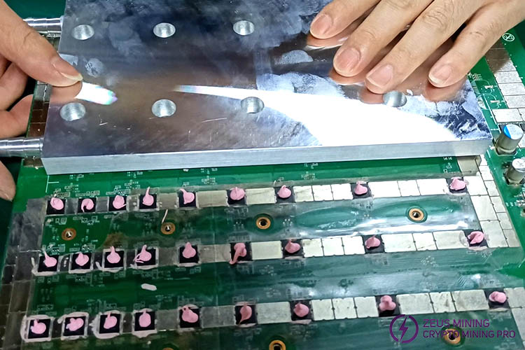 2) Use a manual push glue gun to apply the thermal grease to the chip surface evenly;