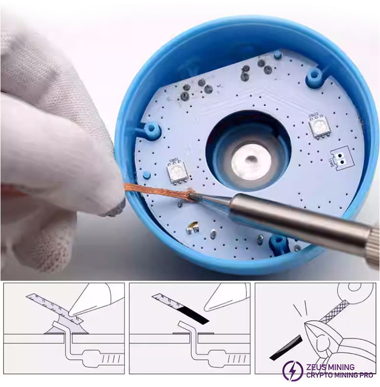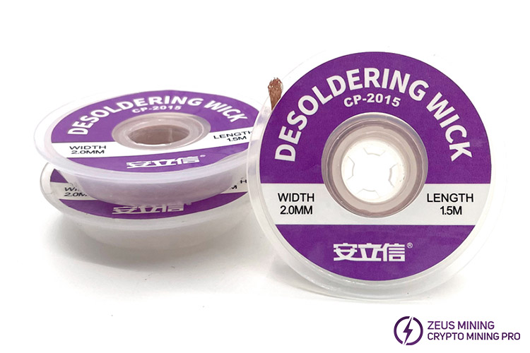 For the solder, you want to remove, place an appropriate length of solder suction wire on the cleaned reflow point. then use the tip of an electric soldering iron to gently press and heat, and the solder will be absorbed by the suction wire after melting. once the solder is absorbed, Please remove the soldering iron and the soldering wire at the same time. please cut off the used soldering wire with scissors.