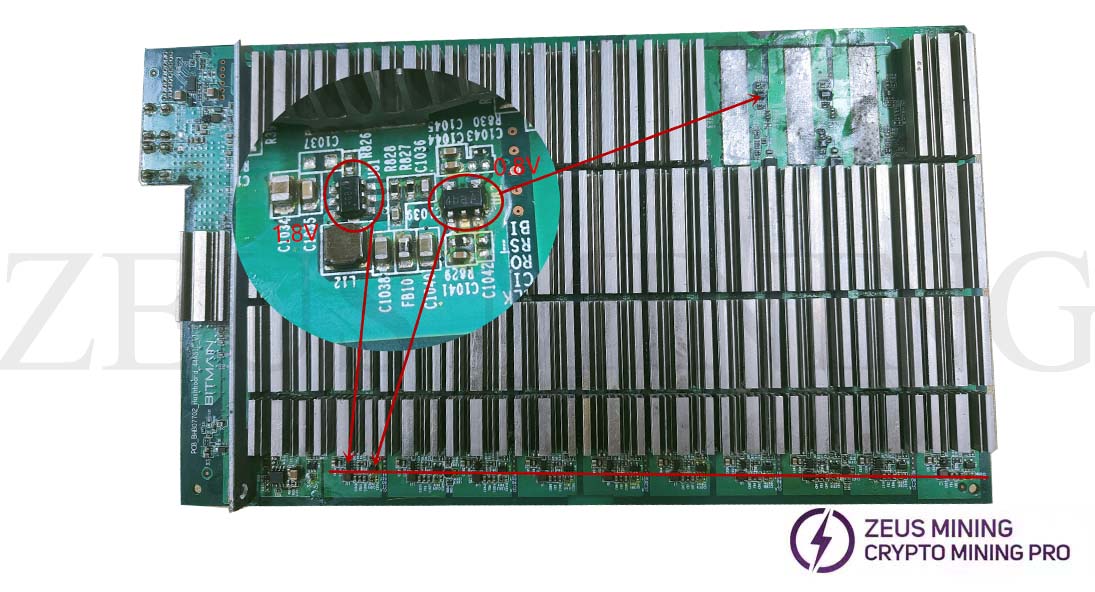 QGBXF 1.8V input synchronous buck regulator, with Antminer T17+ hash board 11 voltage domains, 4 ASIC chips in each domain, QG marking chip 1.8V provides power supply for each domain's ASIC chip BM1397AG, which is the T17+ hash board The indispensable core power supply 0.8V (TT2102-ADJ) and 1.8V LDO regulator.