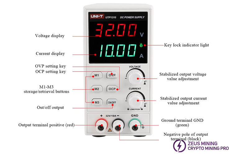 UTP1310S DC stabilized power supply Current 0~10A Voltage 0~30V, resolution 10mV, 1mA; Four-digit power display LED four-digit voltage and current display, 3 sets of data storage, support one-key recall, with key lock function to avoid misoperation; Voltage, overcurrent, overtemperature, with short circuit, overload, reverse polarity and other functions. Because the output voltage time of the chip test fixture is only 15 seconds, when we repair the voltage of the hash board, 15 seconds is not enough, so the UTP1310S DC stabilized power supply can perfectly solve this problem. In the repair of the hash board failure, the stabilized PSU can replace the output voltage of the test fixture, and the time of the output voltage is not limited, which is convenient for us to test the powering unit of the hash board and improve the repair efficiency.