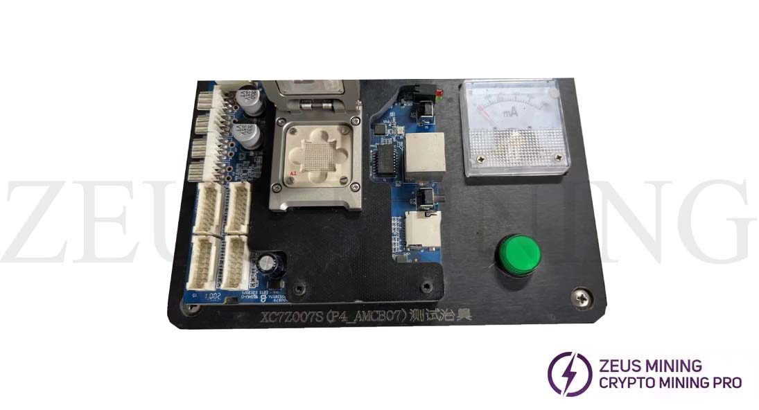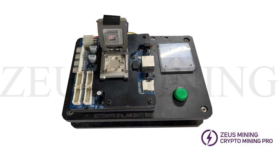 XC7Z007S chip tester | test seat is a test fixture used to test the main control chip of the Antminer miner control board(Antminer17 series 19 series control board). Test control board main control chip the usual method is to check with a multimeter after the control board is powered on, or to touch the surface temperature of the main control chip of the control board by hand after power on. These two methods are troublesome and low in accuracy, making them difficult to control. Once the judgment is wrong, the interests of the miners will be lost. 7z007s chip tester | test seat can assist repair personnel to quickly and accurately testing the quality of Antminer control board main control chip 7z007s.