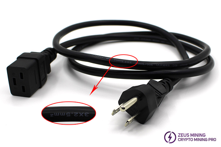 Whatsminer C19 power wire gauge size: 3x2.5mm2