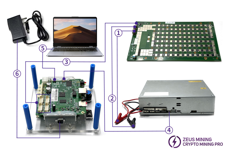 There are two method to use and connect the Antminer universal constant temp chip fixture test fixture: