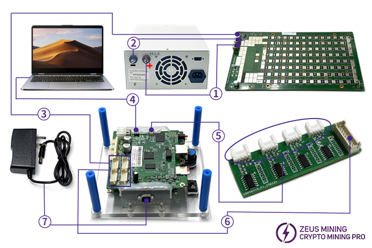 ⑥ Test fixture data interface: connected to the Antminer tester voltage regulating board;