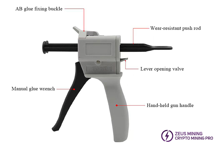 This product is a special extrusion gun for two-component pastes, which can accurately control the extrusion volume and is suitable for 50CC syringe filling (A group 25cc + B group 25cc).