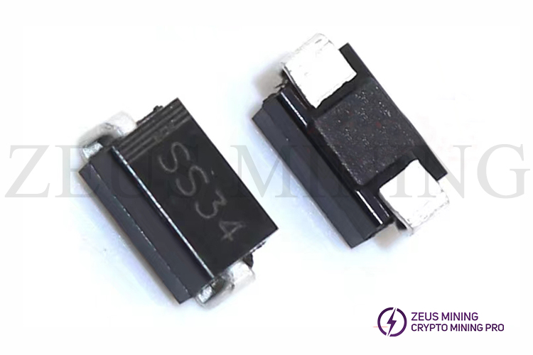 SS34 is a surface mount High Power Schottky Rectifier with a Low voltage drop of 0.5V and a high forward current of 3A. This diode has high efficiency and a high surge current capability of 100A. It is commonly used in freewheeling, DC/DC converters, and reverse polarity protection applications.