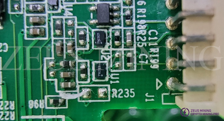 The signal level conversion chip whose silkscreen is 74GTE7 is located on the S19jpro hash board of the Antminer. U1 is the RST signal level conversion chip, U2 is the RX signal level conversion chip, and U4 is the TX signal level conversion chip. When the 3.3V voltage from the control board is passed through the level conversion chip, it is converted into the 1.8V voltage used by the ASIC chip signal. Among them, the RST signal and the TX signal start from the CPU of the control board, pass through the level conversion chip, and are transmitted from the No. 1 chip to the last chip. The RX signal starts from the last chip, is transmitted to the No. 1 chip, then passes through the level conversion chip and back to the control board's CPU. If the two signal level conversion chips whose silkscreen is 74GTE7 are damaged, it is recommended that you replace the new signal level conversion chips immediately to ensure the normal operation of the S19jpro hash board. We provide you with a high-quality, adequate supply of accessories and tools; welcome to buy.