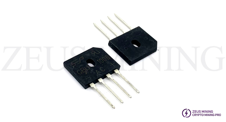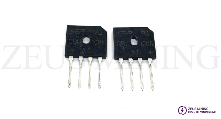 GBU1008 800V, 10A, SIP, 4-pin, 1V, single-phase bridge rectifier, reliable, low-cost construction in molded plastic technology, ideal for printed circuit boards.