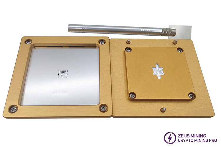 New KF1960 chip tinning kit for repairing hash boards for Whatsminer M30S, M30S+, and M30S++. It can be used for re-tinning of oxidized ASIC chips and can also be used for tin planting of new KF1960 chips. The operation is simple, the tinning is fast and convenient, and the tinning effect is uniform and not short-circuited. It is an essential tool for repairing M30S, M30S+, and M30S++ miners.