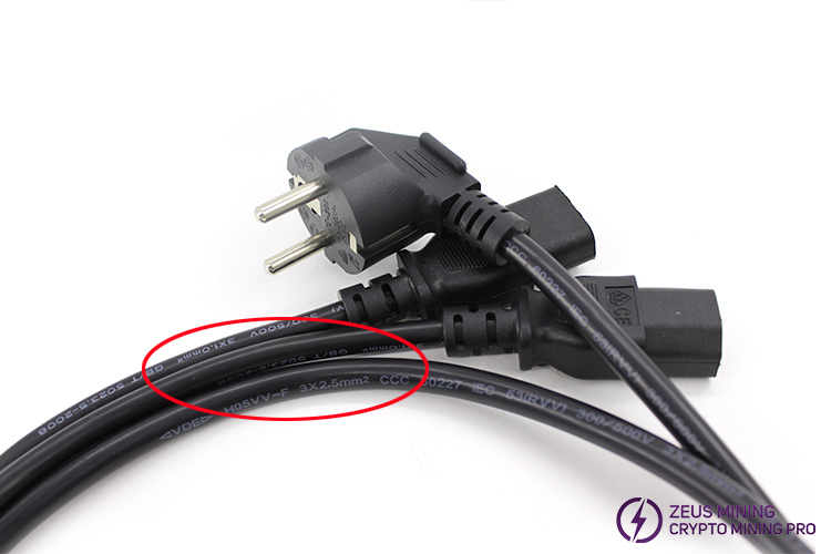 Note: 3*1.0mm² or 3*1.5mm² splitter cable power cord can keep the miner running normally. If you have higher requirements for the quality of the power cord, you can choose a 3*1.5mm² splitter wire diameter cable.