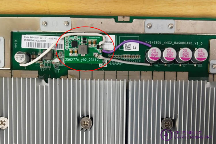 Antminer S19 hashboard with 18V boost module installed: