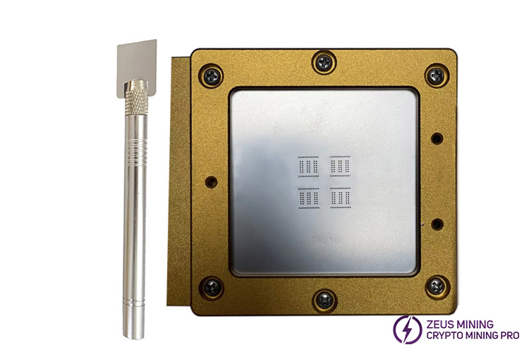 INNOSILICON T4U16 ASIC chip tinning tool for ASIC chip replacement and tinning of INNOSILICON T3 T3+ T3+B miner hash board. Tin tools are made of electric and high-temperature resistant composite materials, which are more durable than alloy materials. In the process of replacing the chip, it can effectively prevent the generation of charge and protect the chip. The steel mesh is made of high-quality materials, with precise positioning, high-temperature resistance, and no deformation. This product is suitable for direct heating, which is more convenient and quick to get the job done.