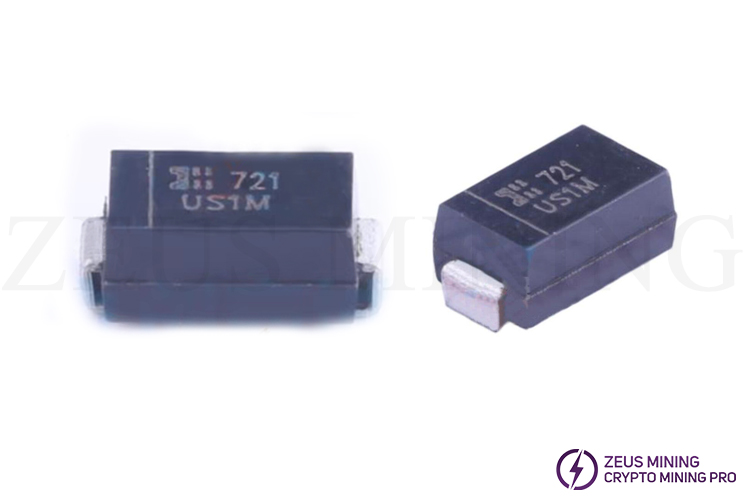 US1M-13-F is a 1.0A surface mount ultra-fast rectifier, often used for Antminer APW17, APW3++, APW7, APW8, APW9, and APW12 power supply maintenance. It achieves high efficiency with ultra-fast recovery time due to its glass-passivated mold structure.