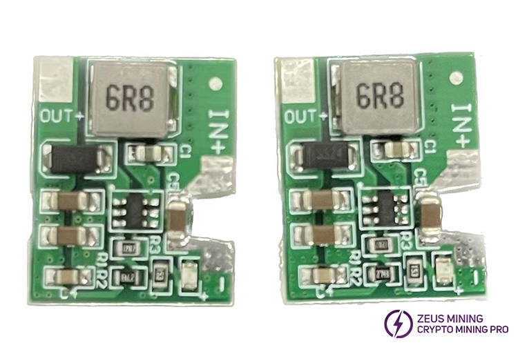 Innosilicon power booster board 18V for repair and replacement of A6 A6+ T3+ miner hash board failure booster area. The output voltage is 18V maximum. The boosted board is composed of PCB plastic and metal and has functions such as under-voltage lockout, current limit, and thermal overload protection. When the booster circuit of the A6 A6+ T3+ hash board cannot be repaired, the booster board can be directly replaced and welded to ensure the normal power supply of the hash board and the normal operation of the miners.
