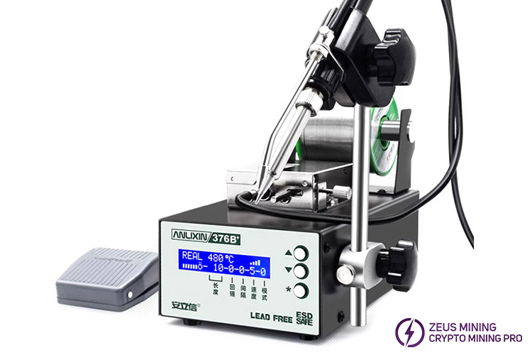 ANLIXIN 376B+ intelligent automatic soldering station adopts a pedal hose to discharge tin, welding heating core, uniform and stable tin discharge, and multiple modes are free to choose from. The automatic tin-discharging device adopts a stepping motor with precise and fast tin-discharging, low heat generation, and stable operation. Equipped with an all-copper core transformer, the power is abundant, and the performance is stable. The copper wire's electrical conductivity and mechanical strength are better than the aluminum wire's, the power is sufficient, and the service life is long. Its heating core adopts a ceramic welding design, which heats up quickly and stably, is stronger, and the production operation is more durable.