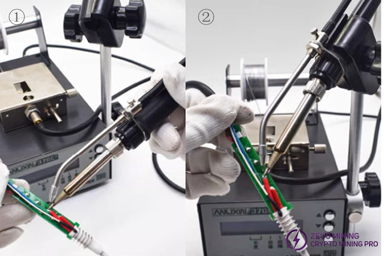①Handheld operation: The soldering iron and tin feeding tube can be removed to restore traditional usage, and the step of holding the tin wire can be eliminated!