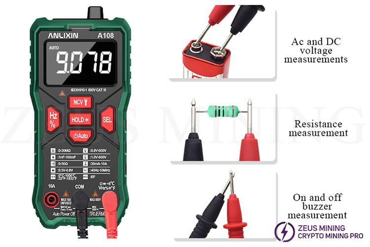 Anlixin A108 intelligent anti-burning multimeter adopts full-automatic range, complete functions, instant measurement after power-on, 18 kinds of function recognition, such as AC and DC voltage/AC/DC current/resistance/capacitance on-off buzzer/zero live wire identification, etc., to meet the daily needs of customers.