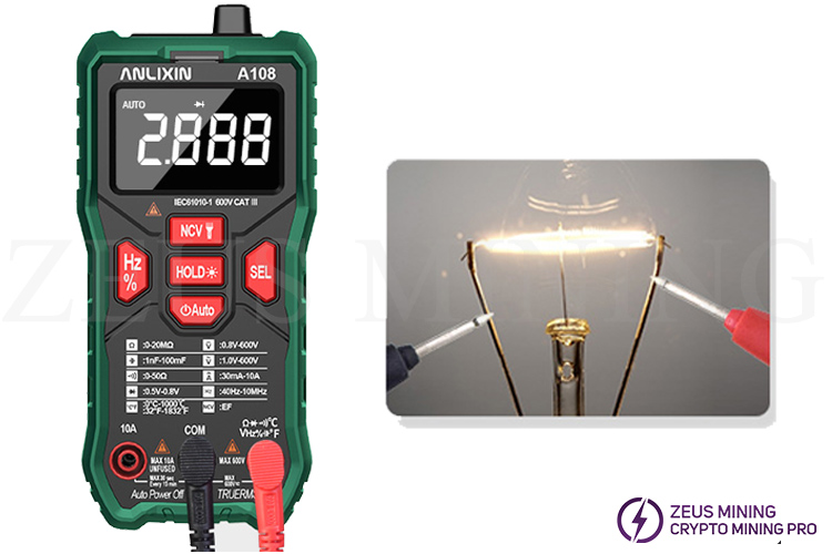 ③Use the other two ends of the test pen and connect to the voltage source, both ends of the load or the resistance to measure
