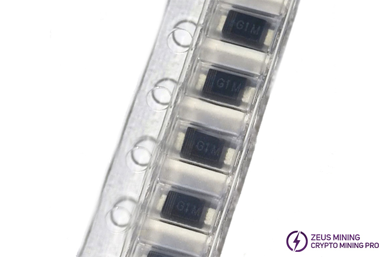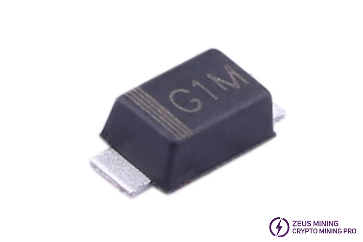 G1M 1KV 1.0A surface mounts glass recovery rectifier in SOD-123FL package on E12 hash board, commonly used for general switching rectification of power supplies, inverters, converters, and freewheeling diodes in consumer and telecom.