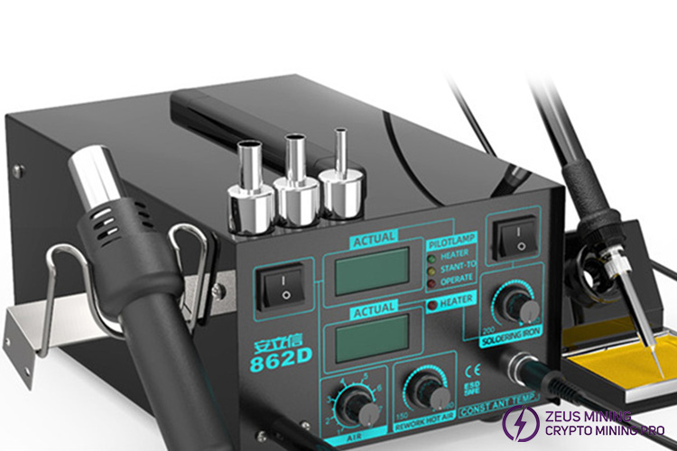 Quick 709D+ 1350W is a 2 in 1 high-power rework system used to repair and solder hash board ASIC chips or other electronic components. The temperature of the soldering iron is 100~480℃, and the temperature of the hot air gun is 100~500℃.