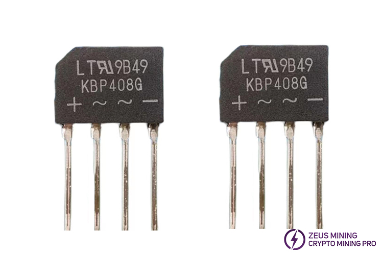 KBP408G bridge rectifier, single-phase standard voltage 800 V, standard current 4A, through-hole KBP, often used in Avalon power supply applications.