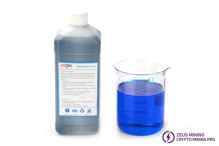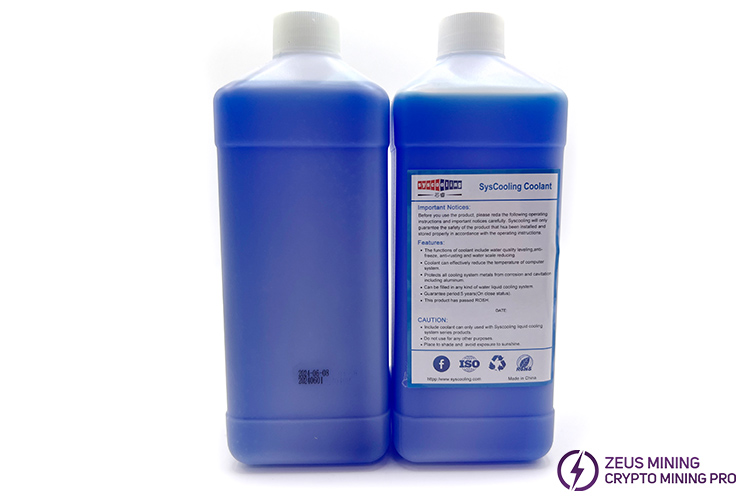 Syscooling water-cooling liquid is an important accessory for installing water-cooled miners. It has high fluidity and antibacterial ingredients, effective anti-rust, anti-corrosion, anti-scale, and high-quality thermal conductivity, and does not support combustion. It contains copper, brass, Nickel, and aluminum heat sinks that protect perfectly. Its products are effective against freezing and can work in environments ranging from -20°C to 100°C. Brand-new environmentally friendly formula, using decomposable raw materials, no accumulation, no pollution to the environment, and in line with EU standards, widely used in water-cooling systems and heat conduction of various water-cooling components.