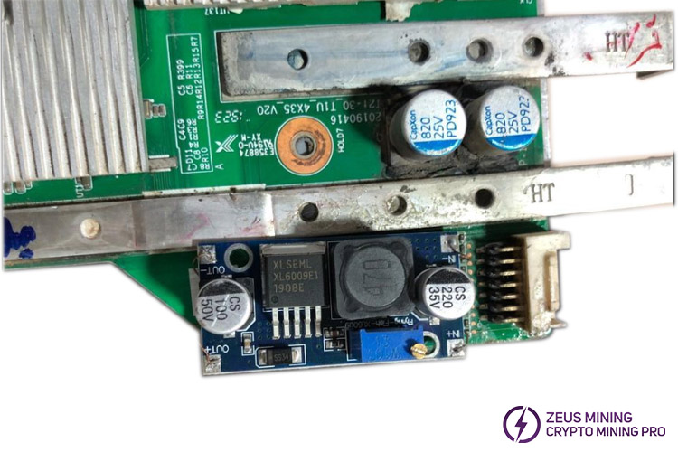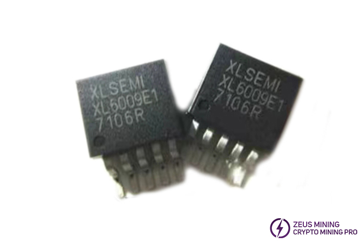 XL6009E1 400KHz 60V 4A is a wide input range, current mode, DC/DC converter capable of generating positive or negative output voltage, and it is located on an Innosilicon T2TZ hash board. It can be configured as a boost, flyback, SEPIC, or inverting converter. The XL6009 has a built-in N-channel power MOSFET and a fixed-frequency oscillator with a current-mode architecture for stable operation over a wide range of supply and output voltages.