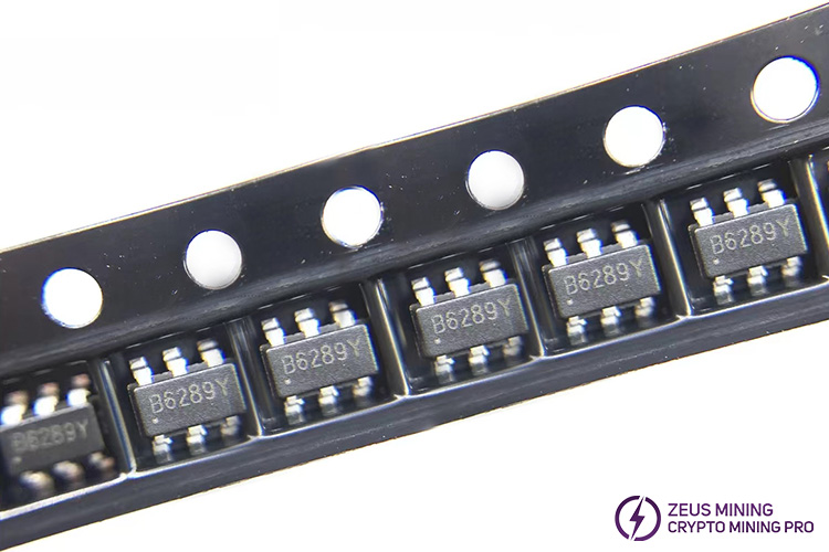 LN3608 is a tiny, high-efficiency, step-up DC/DC regulator chip on Avalon A6/A4+ hash board, with B6289Y silkscreen in the SOT23-6L package. The chip can work efficiently and stably in a wide load range. It has a built-in 4A power switch and soft-start protection circuit. Up to 93% conversion efficiency can effectively extend battery life. The output voltage can be set by adjusting two external resistors.