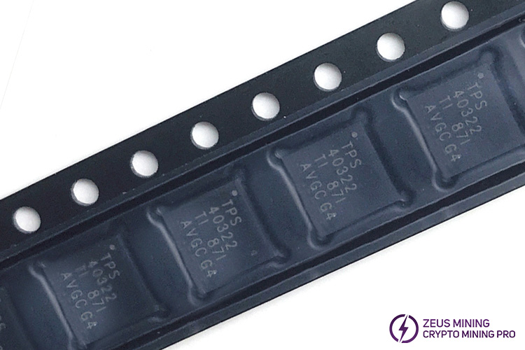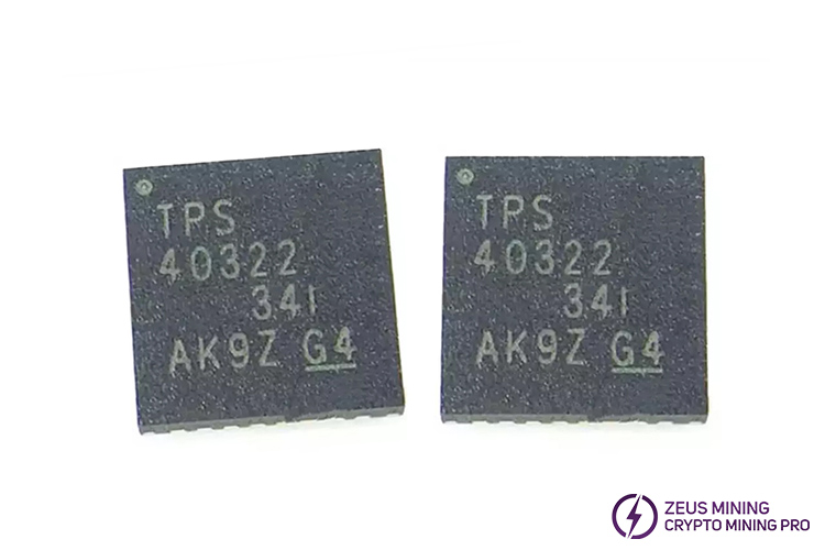 The TPS40322 device is a dual-output synchronous buck controller on A10 hash board. It can be configured as a single-output, two-phase controller. 180° out-of-phase operation reduces input current ripple and extends input capacitor life. Its wide input range supports 3.3V, 5V, and 12V. An accurate voltage reference meets the precision voltage required by Asics and potentially reduces output capacitance requirements. A separate PGOOD signal provides flexibility for system monitoring and sequencing. Voltage mode control is implemented to reduce noise sensitivity and ensure low-duty cycle conversions.