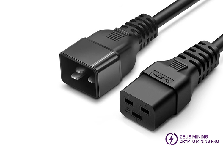 C20 to C19 16A 250V server power extension cable is used to extend the power between electrical appliances and power outlets, suitable for Avalon miner, Iceriver miner and Whatsminer, 3C certified, safe, and durable.