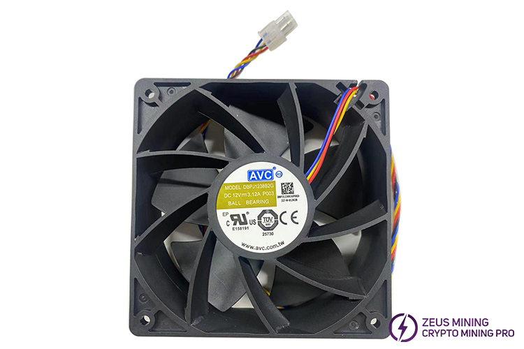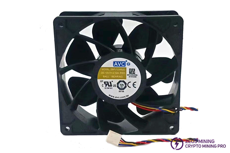 120mm DBPJ1238B2G 12V 3.12A cooling fan is a universal cooling fan suitable for Antminer S21, Whatsminer, Innosilicon A10, T2T, Ebit E9 and other miners. With double ball bearings and 4-wire PWM temperature control, this fan can solve the failure problems caused by old fans, with long service life and good performance.