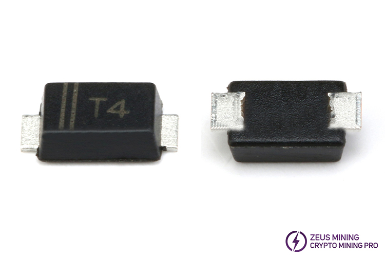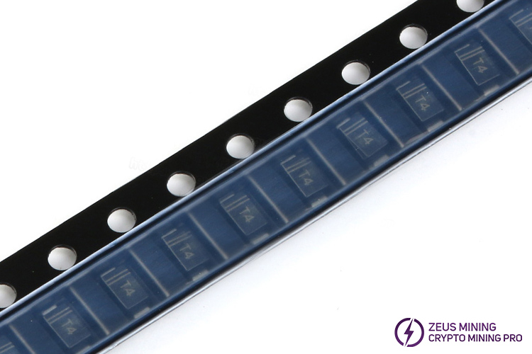 IN4148W is a fast switching diode marked T4 on the silkscreen; it is located on the Whatsminer hash board and Antminer APW17 PSU, it adopts SOD-123 packaging technology, the switching speed is fast, and it is often used in general switching applications.
